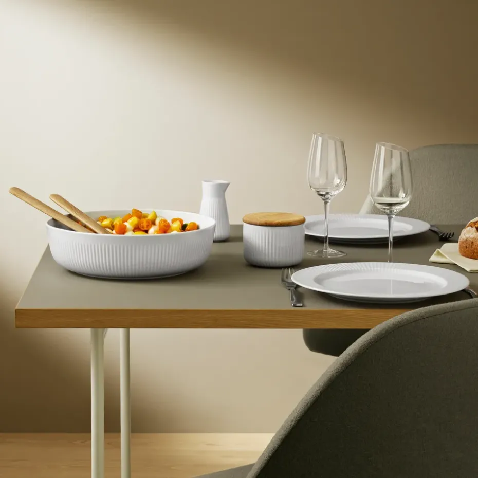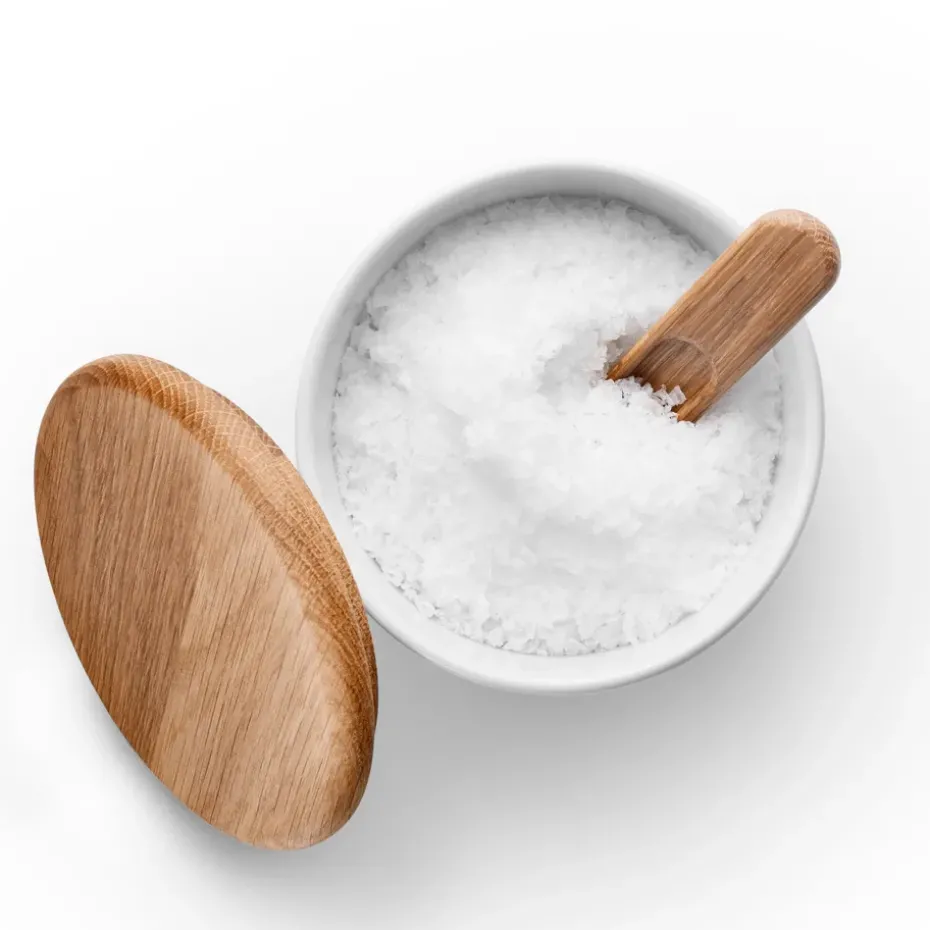 - Materialen: Porselein, eikenhout