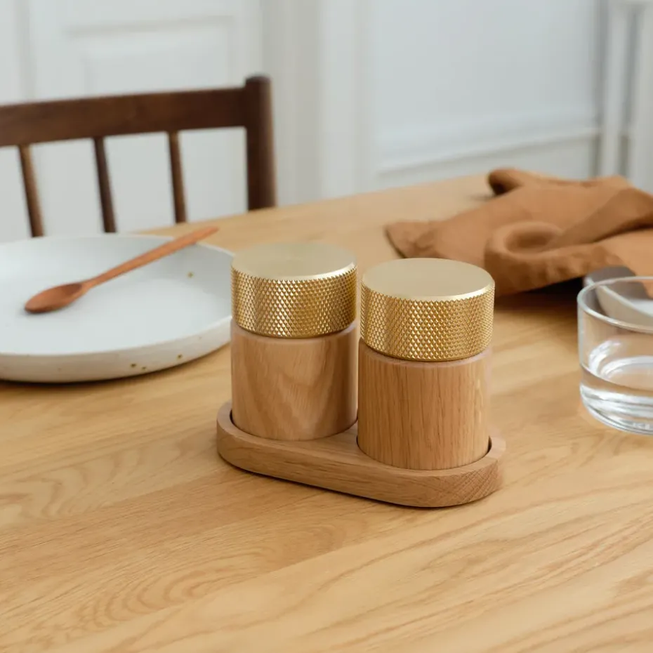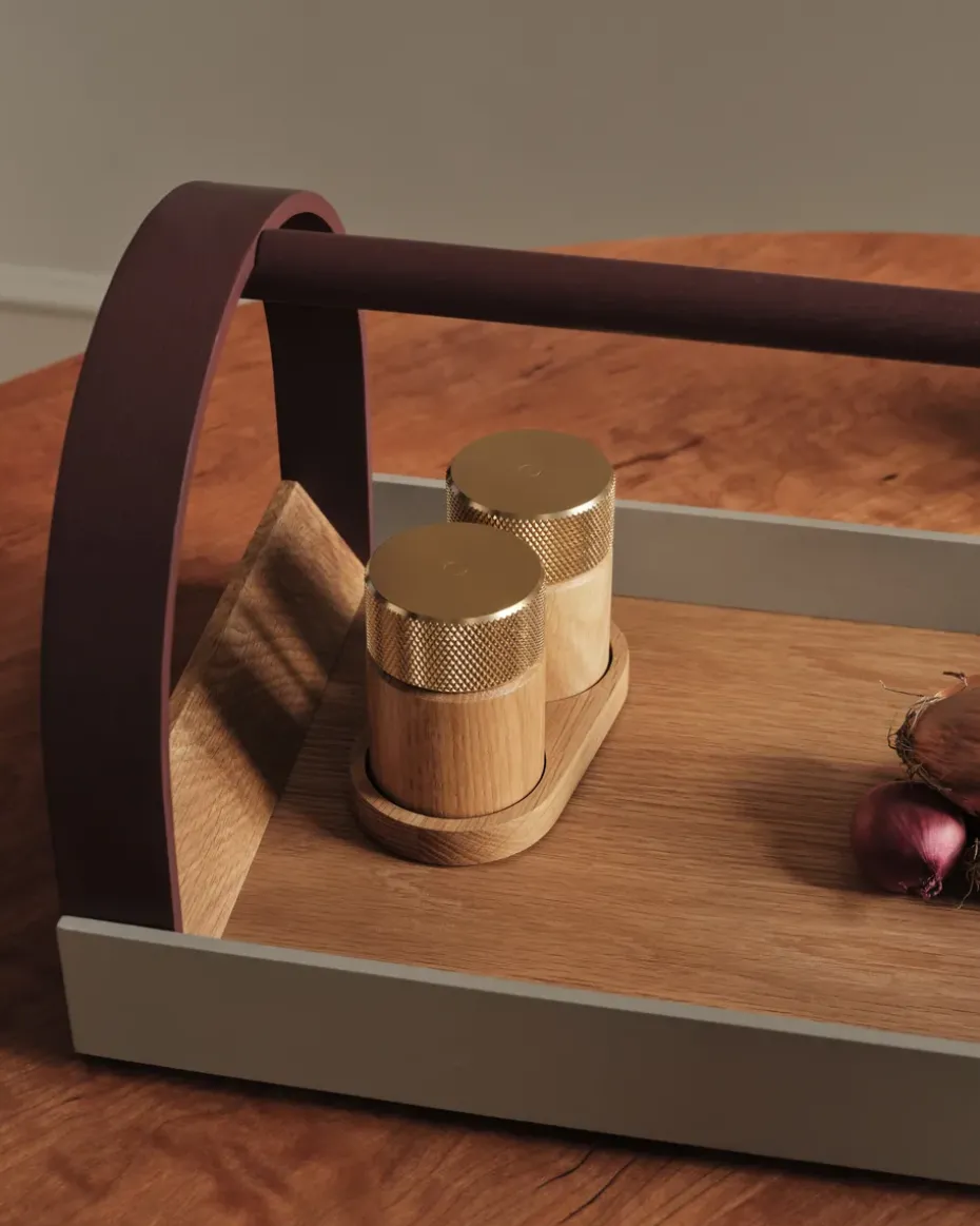 - Materialen: Eikenhout, aluminium