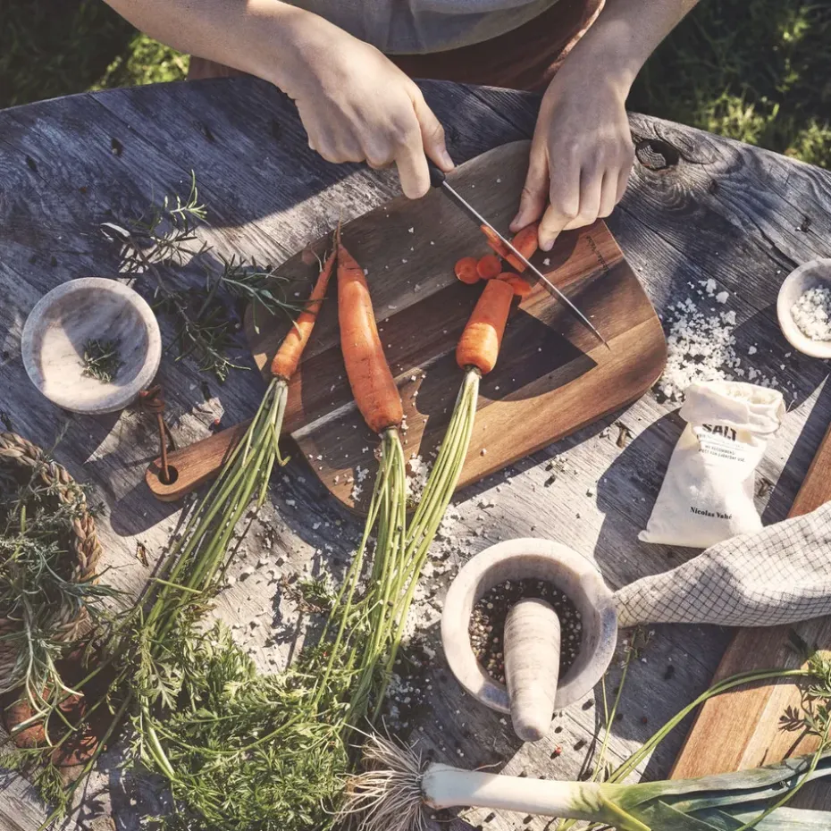 - Materialen: Leer, acacia