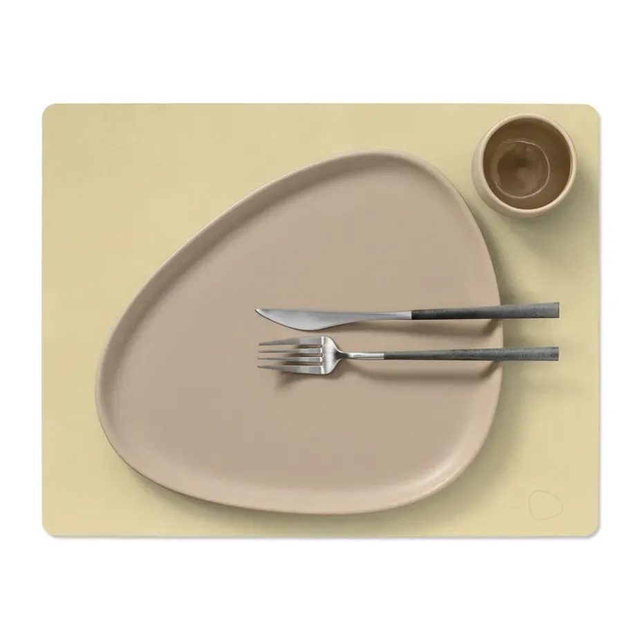 Vermijd direct zonlicht gedurende langere tijd: dit kan de structuur van het leer aantasten.Plaats het tafelblad alleen op een droge, vlakke ondergrond. Wees extra voorzichtig met geoliede tafels, omdat overtollige olie door het product kan worden opgenomenNiet weken. - Vorm: Rechthoekig