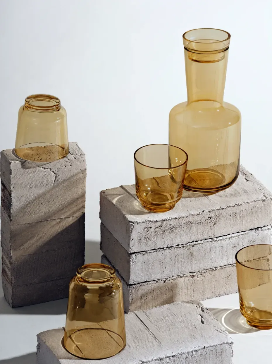 - Productie: Het glas wordt met de mond geblazen. Er kunnen luchtbellen en verschillen in dikte zijn.