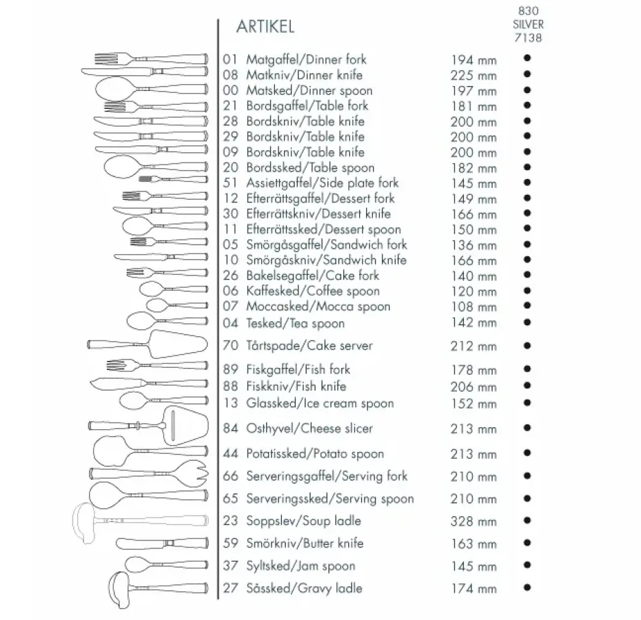 - Onderhoudsinstructies: Bewaar zilverwerk niet samen met roestvrijstalen bestek.